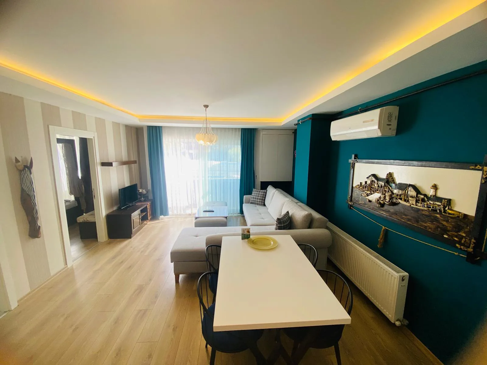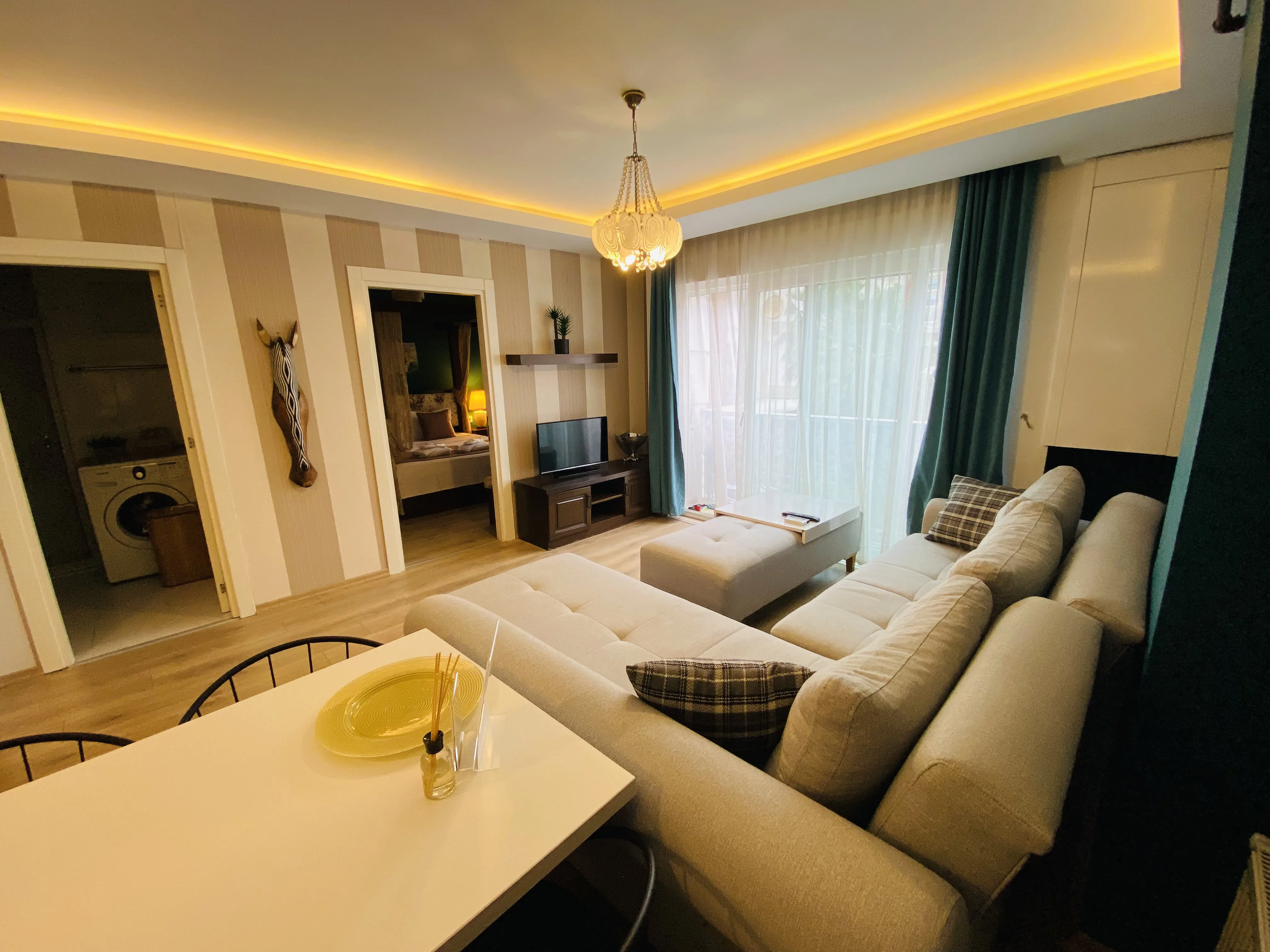 Dairelerimiz ücretsiz wi-fi, klima, doğalgaz, tv, tam donanımlı mutfak, bulaşık - çamaşır makinası, buzdolabı, fırın, mikrodalga, çay/kahve makinası, tost makinası, ütü, kişisel hijyen ürünleri - havlu vb ihtiyaç duyabileceğiniz tüm eşyalara sahiptir.