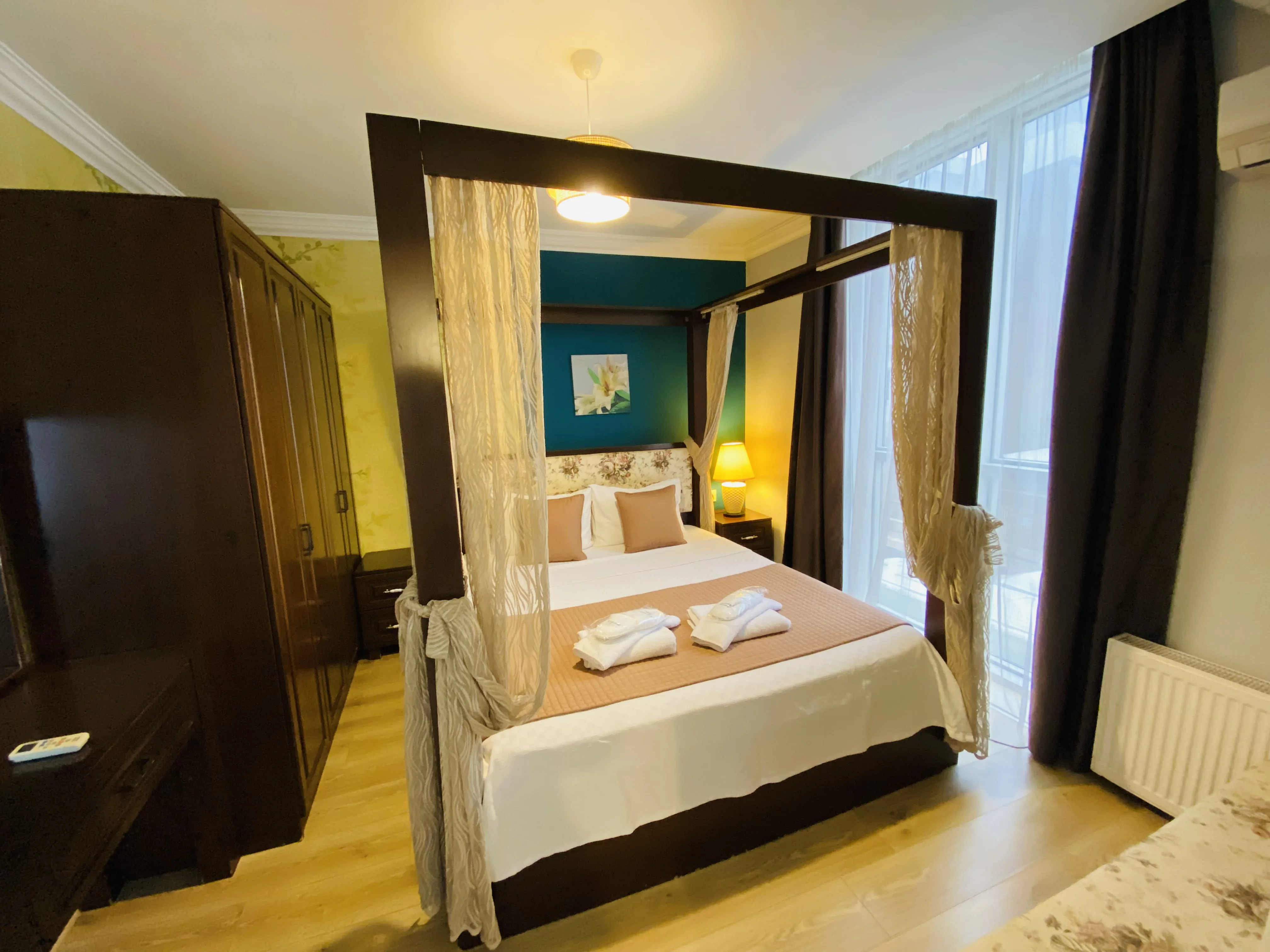 Green Suit 55m² genişliğine sahip olup, aileler, çiftler, turistik ve iş seyahati yapan misafirler için konforlu ve ferah bir yaşam alanı sunar. 2 yetişkin+ 2 çocuk konaklaması için uygundur.